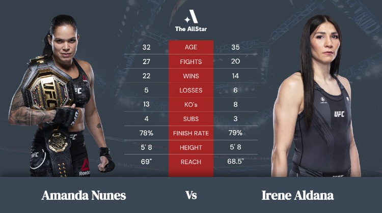 Físicamente y en el golpeo están bastante equilibradas, pero hay una gran diferencia en el grappling a favor de la campeona. Esta podría ser la clave de la victoria. Aldana es muy hábil defendiéndose de los derribos, dicho esto es igual de inepta en el frente del wrestling, si Amanda Nunes hace bien los deberes debería manejar la agresividad de Aldana sin demasiados problemas.